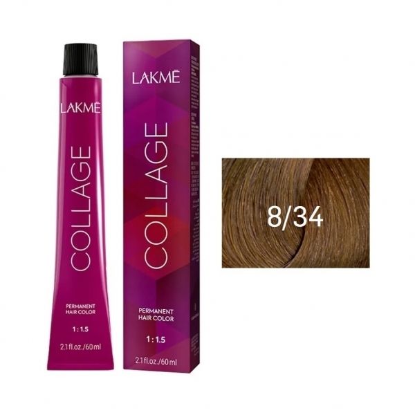 8,34 Крем-краска для волос перманентная Блондин золотисто-медный Collage Lakme 60 мл